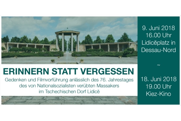 Am 9. Juni jährt sich zum 76. Mal das Massaker an den Bewohnern des tschechischen Dorfes Lidice durch die nationalsozialistischen Besatzer. Nahezu alle männlichen Bewohner wurden erschossen, Frauen und Kinder in Konzentrationlager deportiert und das Dorf dem Erdboden gleich gemacht. Mit einer Gedenkveranstaltung auf dem Lidiceplatz wollen das Netzwerk Gelebte Demokratie Dessau-Roßlau und der Verein Projektschmiede Dessau e.V. an die Ereignisse erinnern.